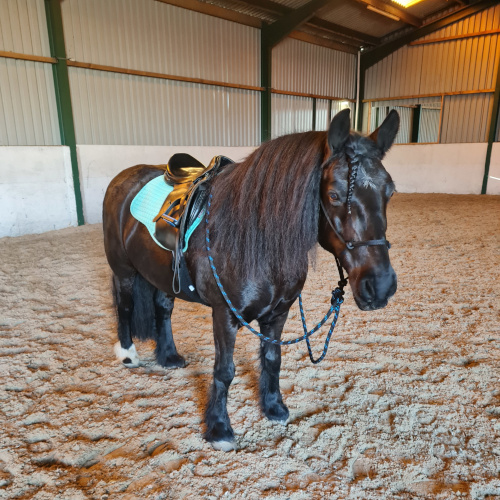 When I started working with Molly, she was definitely my biggest challenge: pretty much feral, scared, difficult to catch, unrideable and with multiple issues due to her past. She was terrified of hose pipe, water, bags, flags, gates, clipping, rugs, sprays, picking feet up, putting bit in the mouth, mounting block, getting on, meeting new people and so on. Initially, I wasn't planning to buy her but when I saw how this poor, terrified and neglected pony is changing over time, I fell for her and knew I couldn’t let her go. I looked into her scared eyes and saw kindness-I knew I couldn’t give up on her and just walk away.
